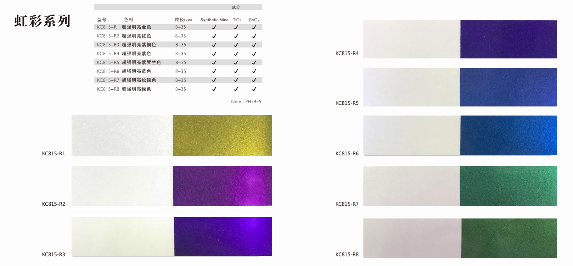 水晶龍系列珠光顏料具有超高的色彩飽和度,明亮耀眼的超強閃爍感,精密的包膜工藝,優良的分散性能。