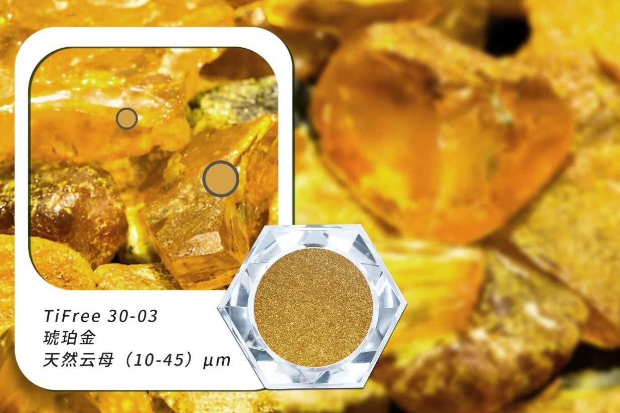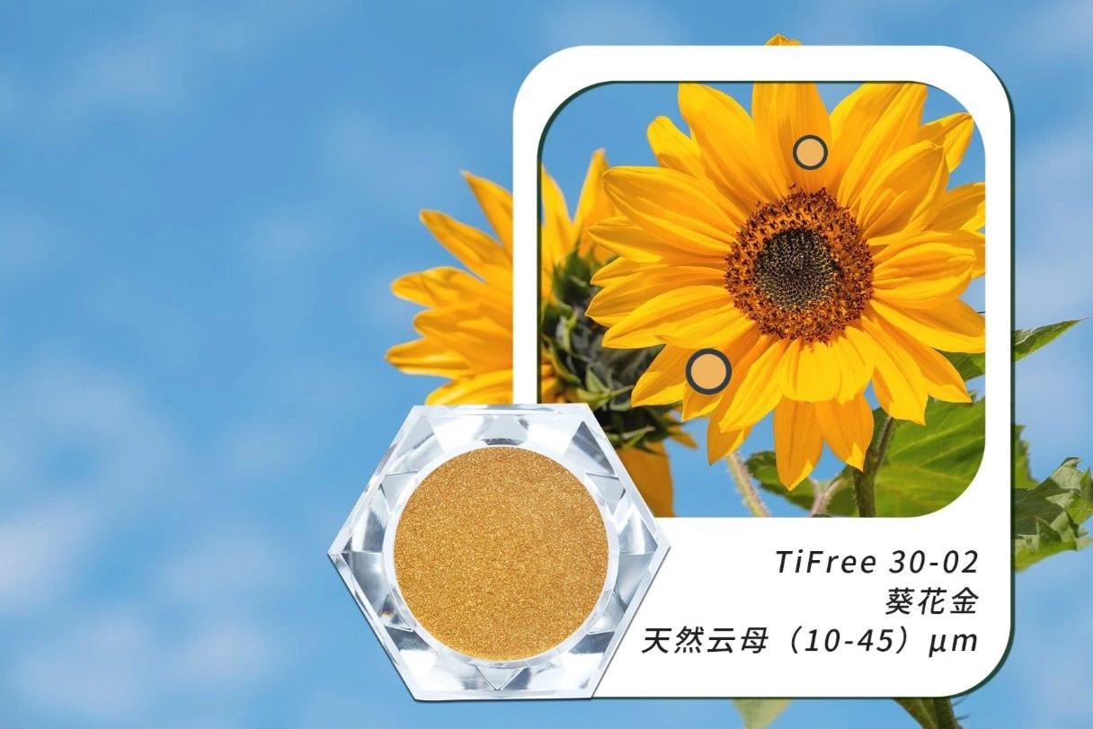 金色系列化妝品級無鈦珠光粉靈感來源于黃金的純凈與活力,該系列屬于無鈦至臻系列,無鈦珠光粉更加符合歐盟E171法規。以前沿的創新技術實現純金般的色彩與迷人的閃光效果。以天然云母為原料,具有極佳的色彩活力,細膩明亮且光滑均勻。卓越的金色色度與柔和的光感效果相結合,為色彩的色調延展開辟了新的可能性。
