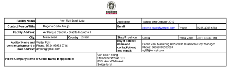 2017年巴西天然云母供應商經第三方獨立審核機構Bureau Veritas核查報告